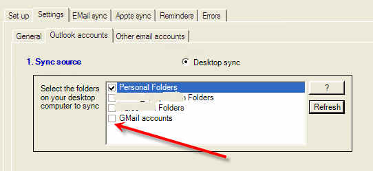 In most situations, QSync will need only reference your Outlook folder, Personal Folders > Inbox. However, there may be occasions where you need to specify additional email accounts.
